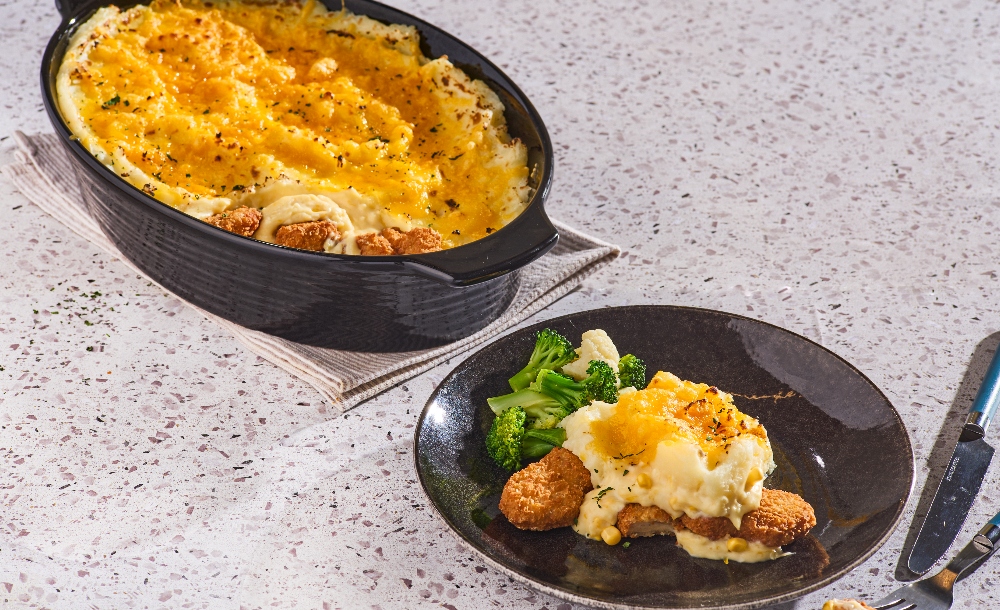 Comforting layers of creamy mashed potato, nuggets, and melted cheese baked to golden perfection.