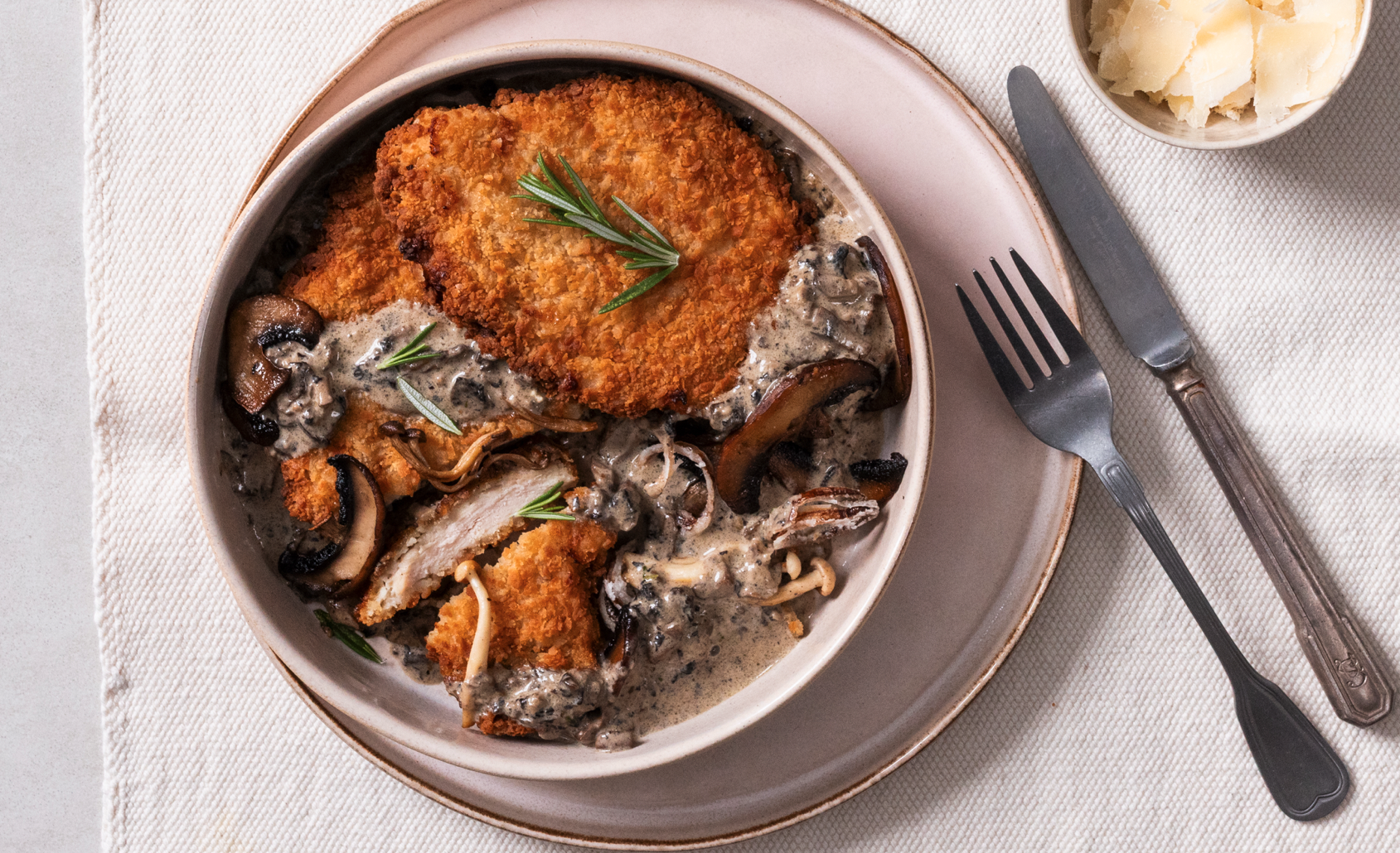Chicken schnitzel & classic mushroom sauce