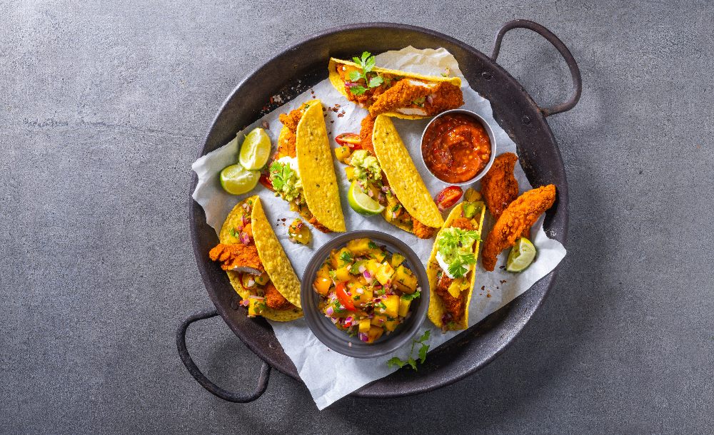 - Serve Ghost Pepper Crumbed Chicken Strips, tacos and salsa on a platter. Let guests add their own toppings of sour cream, guacamole, coriander or extra lime.