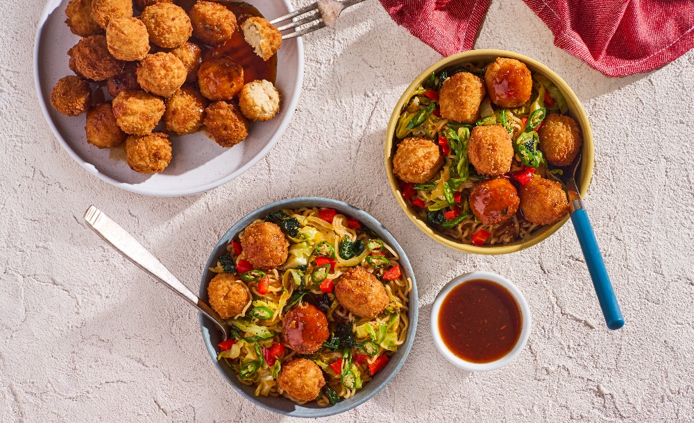 6. Cook frozen crumbed chicken pops according to package instructions and add to cooked noodles.