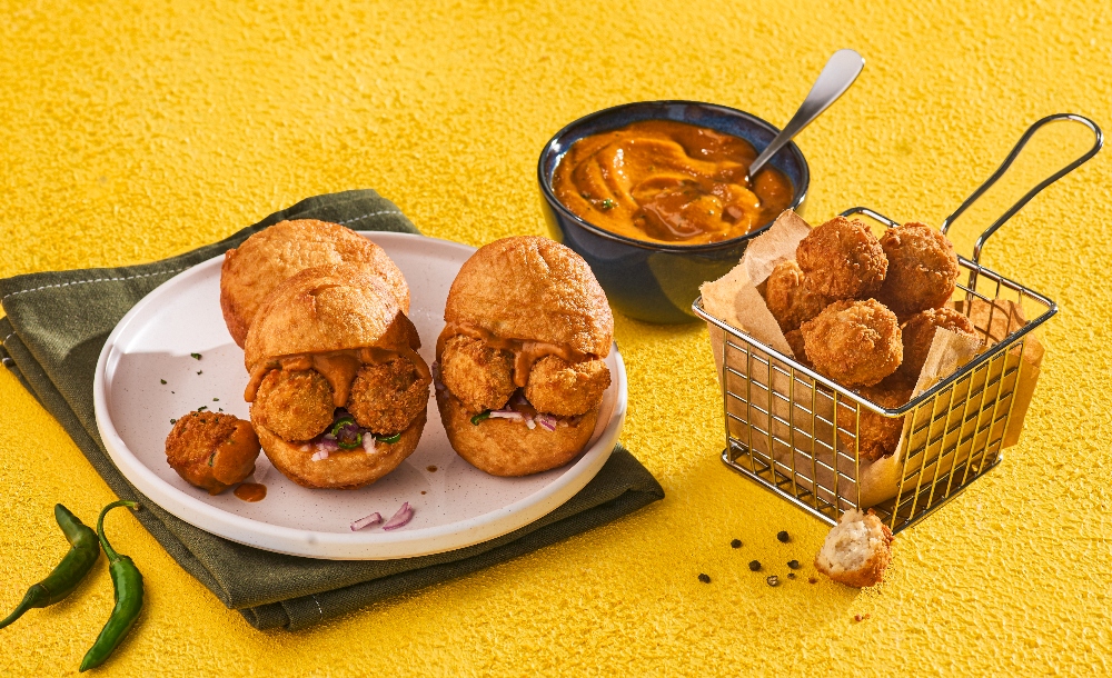 Vetkoek sliders with spicy curry sauce and chicken pops